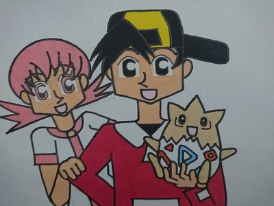 HGSS版ではなく金銀クリスタル版の方の男主人公とアカネとトゲピーです。私ポケスペではゴークリ派ですがゲームではゴーアカ派なんですよね〜♪金銀クリスタル時代の杉森さんが描いた公式イラストはゴーアカっぽいのが多かったのでゴーアカは公式なんだと勝手に思っていたもので(笑)