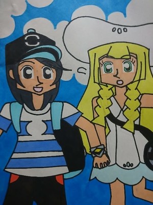 人と接するのが苦手で臆病だった頃のリーリエに積極的に絡んで一緒に行こう!と手を繋ぐヨウ、という構図で描きました。この時のリーリエの心境は(どうしてヨウさんはこんな私に積極的に話しかけてくれるのでしょうか…)って感じです。