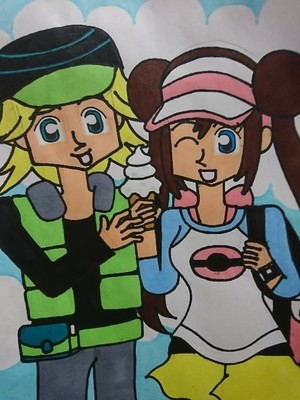 一つのヒウンアイスをふたりで食べてイチャイチャしているメイちゃんとテツ君です♪BW2落し物イベントのテツ君のメイちゃんへのゾッコンぶり、ルリちゃんのキョウヘイ君へのゾッコンぶりを見ているとメイちゃんにはテツ君、キョウヘイ君にはルリちゃんしか考えられないですよ〜。
