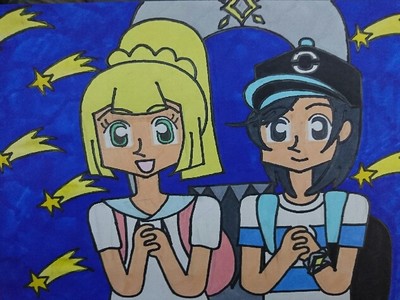 ナッシーアイランドで雨がやんだ後に流れ星に願いごとをするヨウとリーリエです。ヨウの願いごとは(リーリエの未来が幸せでありますように……)でリーリエの願いごとは(トレーナーになってヨウさんと一緒に旅ができますように……)ですっ。