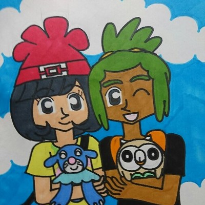 はじめてのポケモンと島巡りの前のワンシーン的なイメージで描いてみました〜。私としてはミヅキにはアシマリ、ハウにはモクローが似合うなって思います。余談ですがニャビーはヨウに似合いそうだなって思いますね。