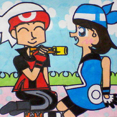 『せかいでいちばんポケモンをうまくあつかえるのはやっぱりなんといってもおれのとうさんだよねー』 『ははん!あんたなーーーんにもしらないのね! せかいでいちばんポケモンのあつかいがじょうずなのはしてんのうのキョウ!つまりあたいのちちうえにきまってるじゃない!』 『わかってないなーおれのとうさんはポケモ・・・』 『ごちゃごちゃいってないであたいのちちうえのほうがすごいってみとめちゃいなさいよ!』 この二人はポケスペで見た時からいいコンビだと思ってたけどまさかの公式での絡みにビックリしちゃったよーvV