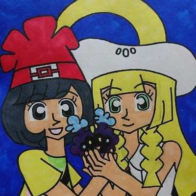 ミヅキとリーリエと太陽に見守られてめいっぱい元気なほしぐもちゃんです。きっとほしぐもちゃんはミヅキとリーリエと太陽の愛情をたくさん受けて後にがちりんポケモンルナアーラとなる事でしょう。一つ前のヨウリエ、ほしぐもちゃんと対になるイメージで描いてみました。