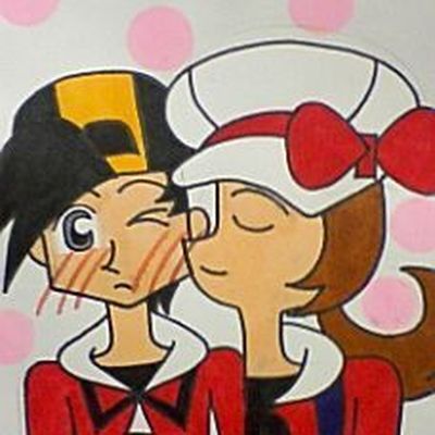ヒビキのホッペにチューするコトネたんを描きましたvV 個人的にコトネの初恋の相手はヒビキだといいなぁ(*^∨^*)