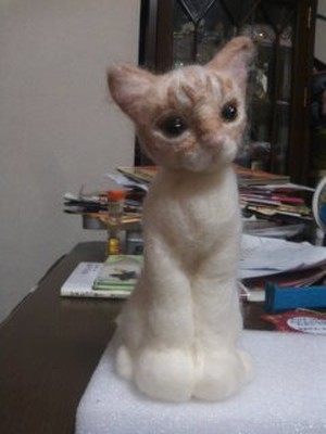 羊毛フエルトで愛猫みゅうさん作った。