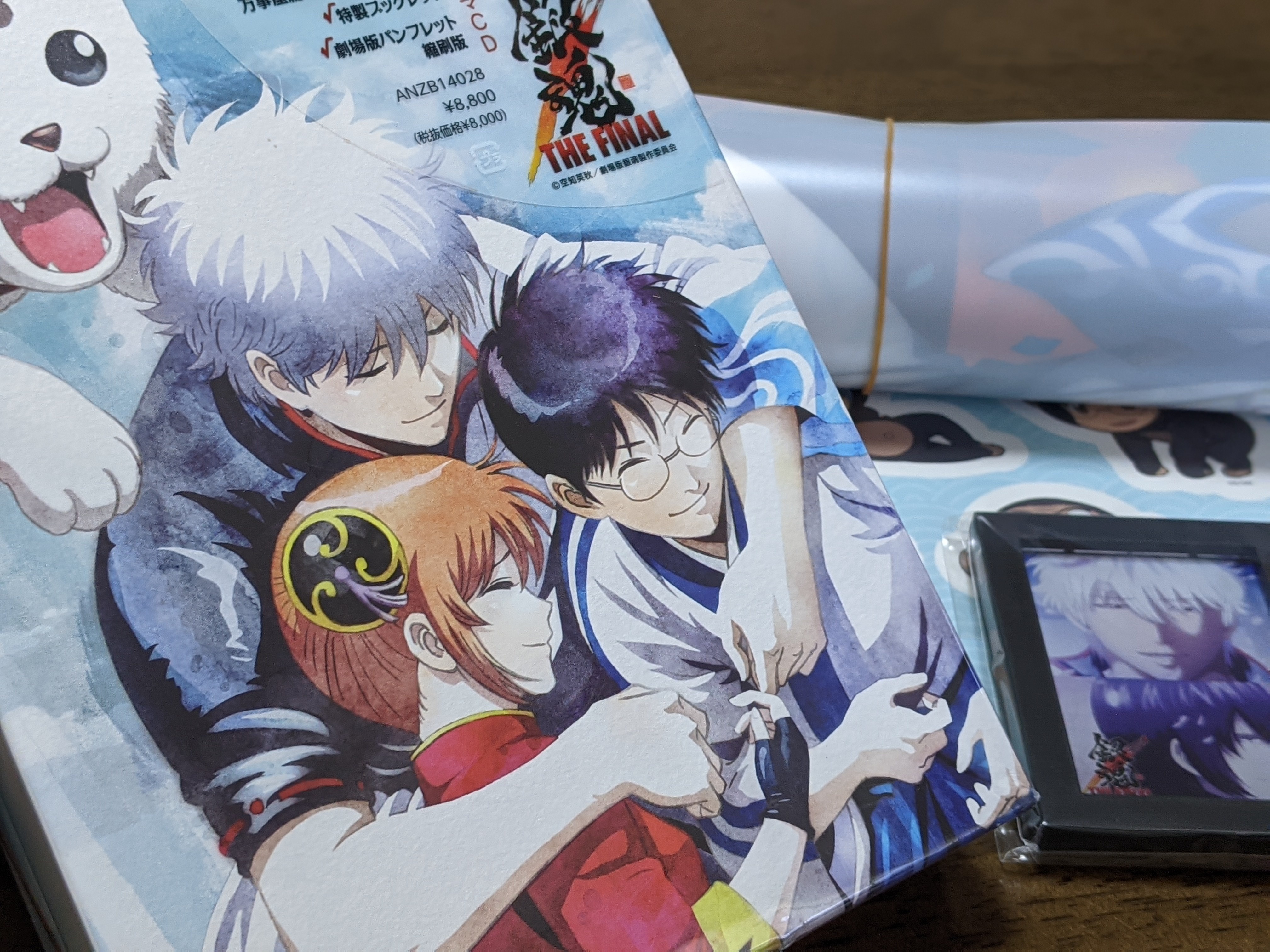 私はアニメイトで予約しました(特典に万事屋クリアポスターがあったので笑)。あとこれは公式ツイッターで見たときも思ったんですが、とにかくパッケージのイラストがすばらしい。なんなんでしょう……なんて言ったらいいんですかね。銀さんがぱちぐらを抱え込んでる構図もそうなんですけど、何より銀さんのこの表情、これは個人的には原作で見ない表情だと思うんですね。銀さんって普段こういう笑顔を見せない。だからこそこのイラストを見たときすごく感動しまして……なんというかザファイナルってわりと高杉をプッシュしてたじゃないですか。劇中のシーンの追加もそうなんですけど、特典の描き下ろしとかもあって。べつにそれがどうこうって話じゃなくて、ただ、万事屋のこういうイラストを見てなんか安心したんですよね。やっぱり銀さんの帰る場所は万事屋なんだな〜って。ザファイナルは銀さんと高杉の物語、みたいになっちゃうのはなんだか寂しいので……。とまあごちゃごちゃ抜かしておりますが、とにかくパケ絵の銀さんの笑顔に惹かれました(語彙力)。