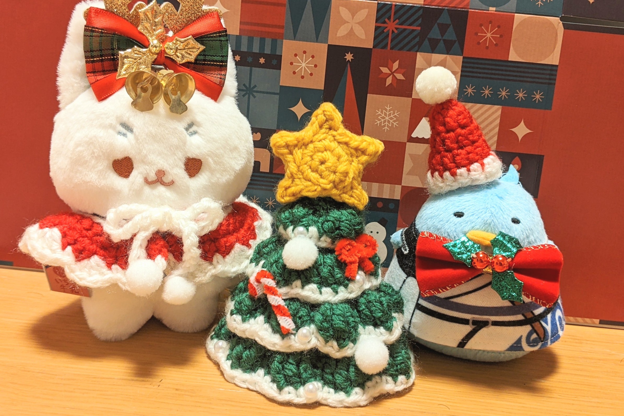 半年前くらいから編み物を始めたので、ちゅん時&モフ時のぬい服を編んでみました。なんだかんだツリーが一番上手く編めてる気がします。