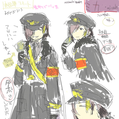当初漫画用にデザインしていたキャラ。 髪の色が餡子色なので愛称はあんことか小豆とかを考えてましたが音の響きを考えてミカに。