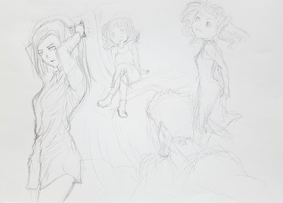 主にイラストで、アナログとデジタル混ぜ合わせ。