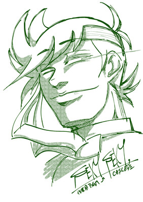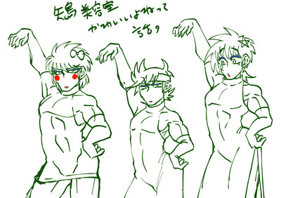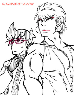 曲を聞いて沸いたイメージを描いたもの。女装ネタもあり。