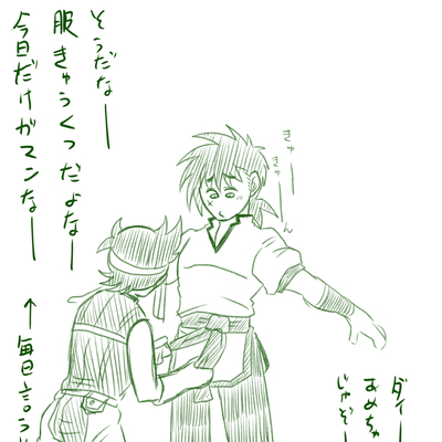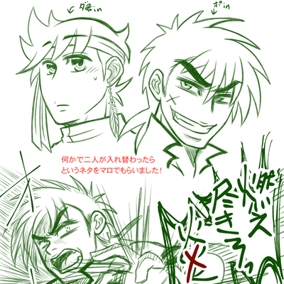 いろいろ描いていたのをまとめたもの。ダ君はデ島装備が好きすぎてそこからインスパイア。ポは最終回の旅立つ時に来ていた服からインスパイア。 帰還本のサンプルで出てきてるページ分も少しだけ。