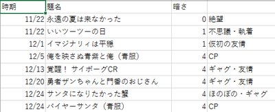 2019年11月末~12月末 作品仕分けグラフ