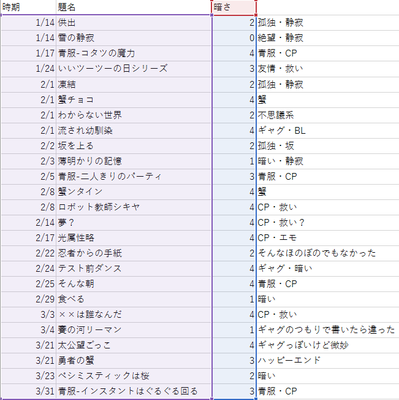 2020/01~03自作品傾向グラフ