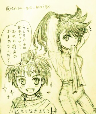 女体化ポップ+男の子ダイくんのダイポプ鉛筆画