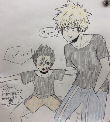 爆豪先輩描きやすいっ。ノヤっさんはもっと目の角度を付けたかった......( ̄^ ̄゜)