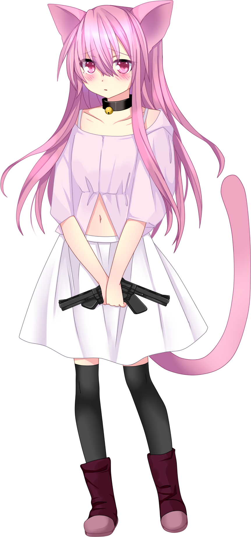 「真っ白な袖無しシャツに、紺碧のミニスカート。それに、何かを抱き抱えているにゃ…あれは、熊の縫いぐるみかにゃ…?」