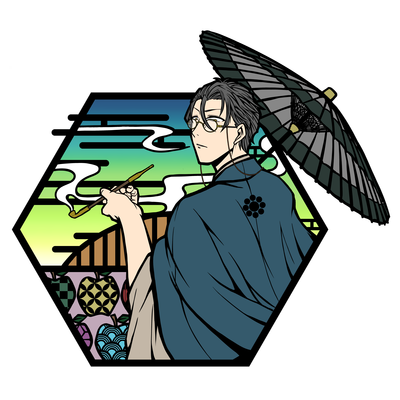 切り絵風和柄デザインの望月暁。