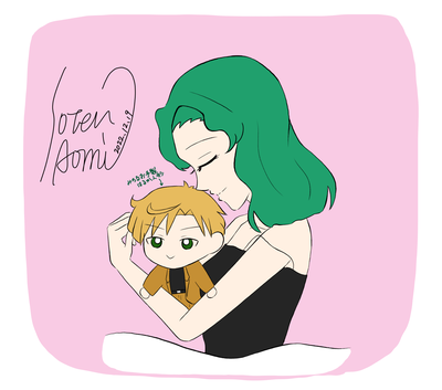 はるかさん人形を抱えて眠るみちるさん。