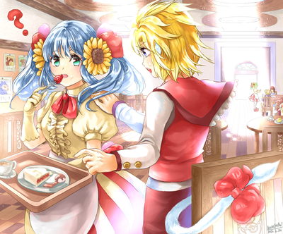 ウェイトレスとウェイターのイメージで描きました。
