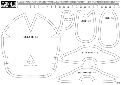 鼻のないスタンダードなお顔が作れる型紙も同梱しているので、好きな方を選んで作ってください♪