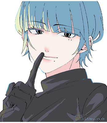 通常は瞳にアクセントとして紫色のハイライト的存在を描き込むのですが、このイラストではピンクとブルーを入れています。髪にはイエロー。信号機カラーです。意図してません。
