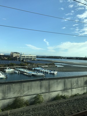 静岡から浜松も15分くらいで到着して、浜名湖は見えるかなと思っていたら、浜松駅を過ぎて5分経って湖畔を通りました。駅は湖畔にあるかと思っていました(笑)
