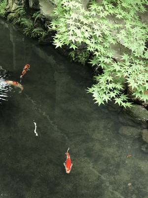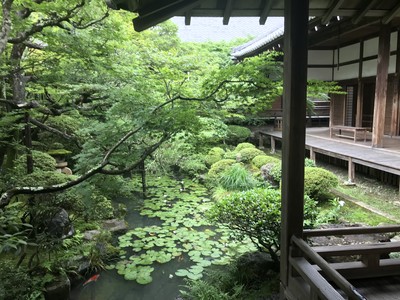 真如堂からタクシーで哲学の道に沿って進み、永観堂を訪れました。永観堂は永観律師(ようかんりっし)が念仏を唱えたのを由来として名付けられたそうです。南禅寺の近くにある、京都随一の紅葉スポットと言われています。入り口から境内、お堂の中には青もみじが多く生い茂っていました。お堂の庭園は緑に囲まれていて、池が美しく、鯉が沢山泳いでいました。回りは全て、緑一色でした。目も心も癒やされました😊