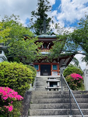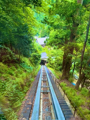 ケーブルカーは2分で一気に多宝堂まで上がります。木に囲まれた斜面を結構上っていきます。多宝堂から静寂な森を通って、いくつかの階段を上がると本殿金堂に着きます。※ケーブルに乗っても階段を結構上がります💧途中休憩がてら広場から比叡山が見えて気持ち良いです。