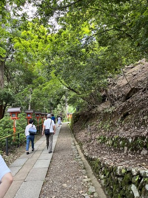 貴船神社の石段は赤い灯籠と青もみじが太陽の光で美しく照らされていました。本殿が新しい作りで大きかったです。絵馬発祥の地で馬の像がありました🐴参拝した後、念願の『水占いみくじ』をやってみました🔮境内にある霊泉におみくじを浮かばせると、字が浮き上がって大吉でした😆下半期もご利益がありますように🌟
