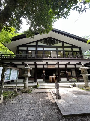 奥宮は本宮から歩いて10分位で、奥宮に着きました。途中に川床や食事処が並んでおり、川の流れと一緒に眺めるのが楽しかったです。ただし、車の通りはあるので注意です。途中で鳥居に入り、灯籠と林道を歩くと奥宮に着きます。本宮と奥宮の間に結社(ゆいのやしろ)がありましたが、帰りに寄りました⛩