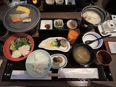 この日は5時半に起きて、大浴場と露天風呂に入りました。6時過ぎに朝風呂に入る人が増えてきました。7時に朝食を食べました。焼き魚や、鶏のサラダ、豆乳鍋などヘルシーだけどボリュームある朝食でした😋