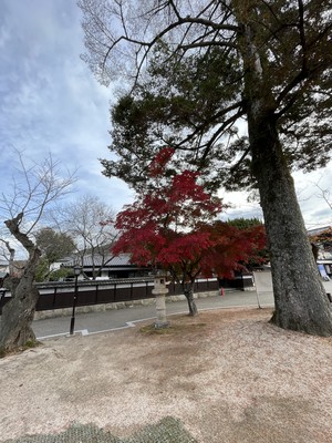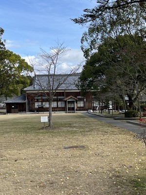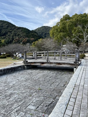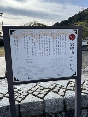 錦帯橋を渡ると吉香(きっこう)公園に入ります。岩国を治めていた、吉川広嘉公の像が建っています。吉川家の館や武家屋敷跡と整備された水路や噴水がある和風と洋風が合わさった広い庭園です。現在の錦帯橋に改良するよう造られた実験橋もありました。吉香公園は少し紅葉が残っていましたが、春はツツジや菖蒲など四季の花を楽しめます。