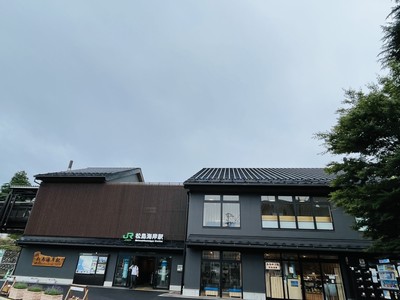 10時の送迎バスで仙台駅へ向かいましたが、青葉トンネルから渋滞で仙台の中心街も混んでいました😓30分で着く予定が1時間掛かりました・・・。11時9分の仙石線に乗り、48分に松島海岸に着きました。仙石線は地下のホームで車内にトイレが付いています。雨が降っていたので景色は見えなかったですが、塩釜付近で漁港や観覧車(アウトレット?)が見えました。