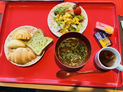 7時の朝食は和洋バイキングでパンをメインに、笹かまや宮城で採れたナスやゴボウなどの山菜を中心に食べました😋普段滅多に食べないゴボウ揚げや鶏肉のミカン和えがさっぱりしていて美味しかったです。