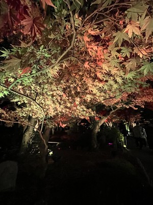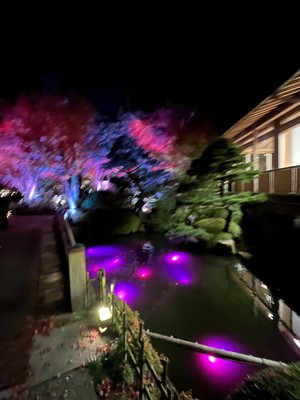 18時45分に由志園に着きました。山陰地方最大の回遊式庭園で現在、紅葉でライトアップしています🍁