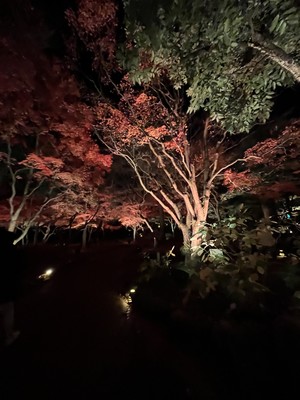 途中に牡丹の花が1年中咲く室内庭園もありました。ライトアップを見すぎたので、後半は急ぎ足で周りました💦映えスポットの太鼓橋と池と紅葉の写真が撮れなかったです😭45分では足りないかなと思いました。不安定な天気でしたが、雨が降らなくて良かったです。気温は低かったですが風が吹いていなかった分、周りやすかったです。