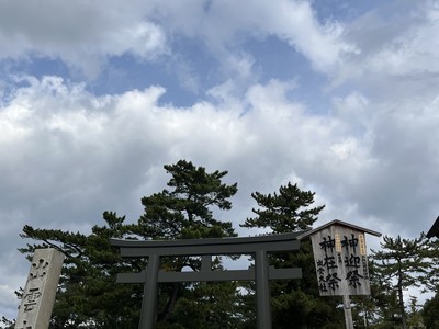 稲佐の浜からバスで10分位で、出雲大社に到着しました。渋滞の関係上、メインの神門通りから少し離れた駐車場で下されました。島根県立古代出雲博物館に近かったです。ここから1時間半、語り部ガイドさんが出雲大社を案内してくれました😊