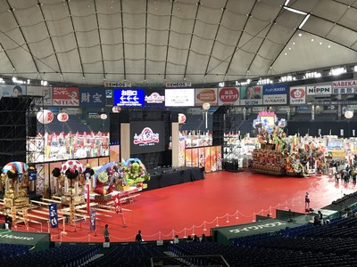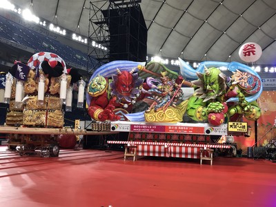 東京ドームへ9時30分頃に着きました。会場30分前から沢山並んでいました!!10時に会場で、中に入ると豪華絢爛な青森県八戸市の八戸三社大祭の山車が飾ってありました!!こちらはお祭の演目で使用していました(^^♪