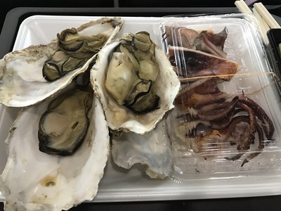 牡蠣も普段食べるよりも大きく、醤油風味で美味しかったです。イカの一夜干しや牛タンも噛み応えが良く食べやすかったです。