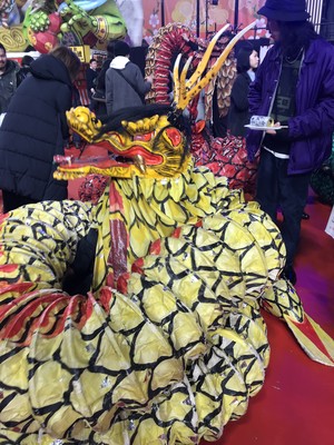 そして、最後に島根県の石見神楽を見ました!!石見神楽はスサノオノミコトがヤマタノオロチを討伐する活劇です。8つのオロチは色鮮やかで不気味な怖さよりも派手な華やかさを感じさせました。オロチを1人で操っているのに驚きました!!獅子舞のように中に入っているか、2~3人で操っていると思っていたので。スサノオの剣さばきも華麗で、オロチの首を斬る場面が格好良かったです!!