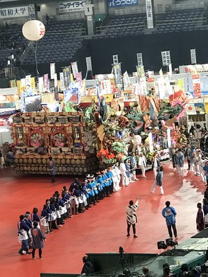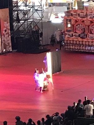 東京ドームへ9時30分頃に着きました。会場30分前から沢山並んでいました!!10時に会場で、中に入ると豪華絢爛な青森県八戸市の八戸三社大祭の山車が飾ってありました!!こちらはお祭の演目で使用していました(^^♪