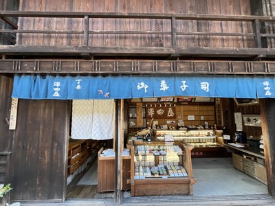 妻籠宿からバスで20分位で、馬籠宿に着きました。馬籠宿入り口近くに見晴台があり、百名山の恵那山が見えました。馬籠宿は意外と坂が急であり、妻籠から来た場合下り坂で歩くのは楽ですが、中津川方面から来た場合は上り坂になるので体力が必要です。馬籠宿の方が食事処や食べ歩きのお店、民芸品等のお店が多く並んでいましたが、着いたのが15時半で平日だったので休業のお店もありました。こちらにも澤田屋さんがありました。池が多く、水路が綺麗で鯉が泳いでいました。水車も多く馬籠宿は水の街道と感じました。途中に藤村記念館や本陣資料館がありました。