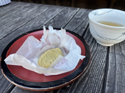 栗きんとんが銘菓の澤田屋で生菓子の栗きんとんを食べました🌰程よい甘さで、冷たい麦茶に合いました😋