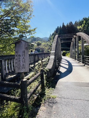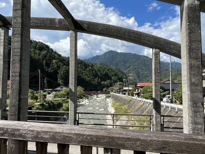 諏訪湖サービスエリアから中央道で一気に飯田山本インターまで行き、星空観察で有名な阿智村と昼神温泉を通り、林道を抜けて13時45分に妻籠宿に着きました。自由散策は90分時間を取ってくれるツアーで、宿場の中間地点まで添乗員さんが案内してくれました。電柱が一切無く、まさに江戸時代にタイムスリップしたような街並です。徳川14代将軍家茂の正室、皇女和宮が京から江戸に向かった時に訪れました。宿場町の横に川が流れていました。