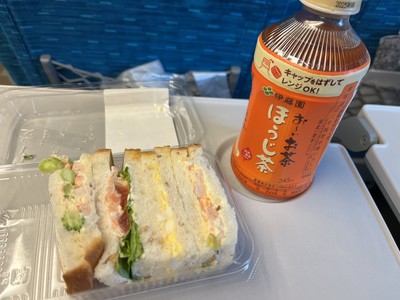 朝は4時45分に起きて、6時に家を出ました。無事に品川駅に着き、朝食と昼食を買って、出発10分前まで待合室でくつろいでいました。大阪万博の宣伝やミャクミャクのオブジェが飾らせていました。8時37分発のぞみ博多行きに乗りました🚄