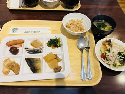 7時に昨日の夕食と同じレストラン蔦で、和洋バイキングを頂きました😋岡山名物のニシン科のままかりや温野菜など色々なお料理を頂きました🥦個人旅行はのんびり食事を楽しめて良いです🍽️