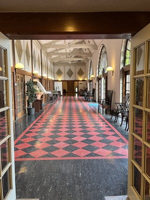 朝は5時45分に起きて、6時に朝風呂に入りました♨️一番乗りだったので、大浴場は貸切みたいで快適でした。朝日の木漏れ日に照らされるステンドグラスが綺麗でした。