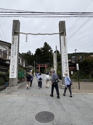 本殿の周りに30メートルを超える七本杉が立っており、神聖な緑の世界に入ったかのようでした。本殿から少し歩いた所に、白滝と天の鳥居がありましたが、時間がなくガイドもなかったので、行かなかったです。