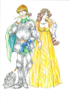 {◎ライゼン姫とブラット騎士。14話表紙。サブタイトルは、あの紅茶からです…。ブリューテ国は昔『花咲ける騎士道』という映画で騎士たちが花の名前に例えられてたところから付けました}