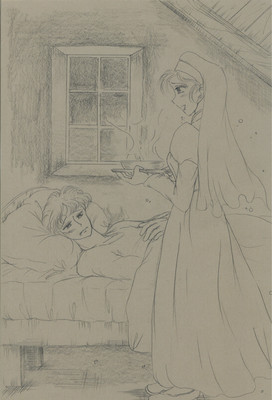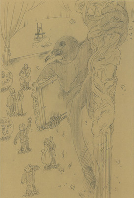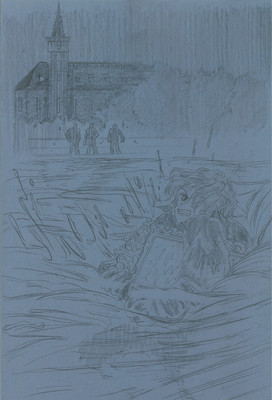 {◎鉛筆描き。小説は本来、読者の想像力を膨らませることが醍醐味(だいごみ)ですが、長すぎるので挿絵を描きました}